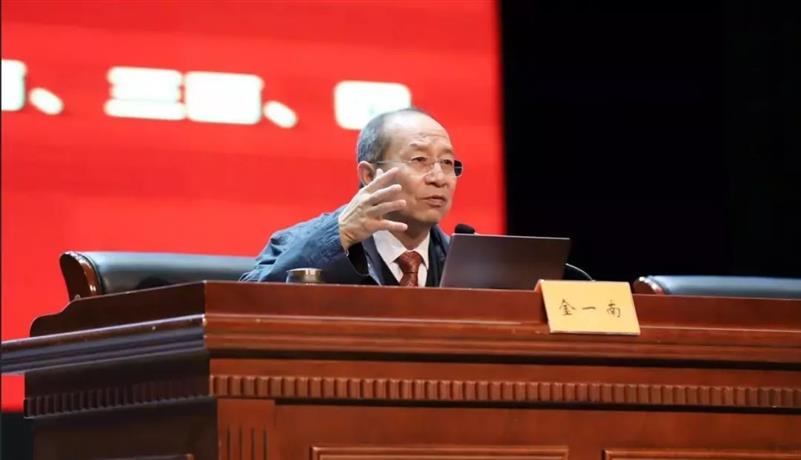 会议邀请了中国人民解放军少将、国防大学战略教研部教授、博士生导师金一南作题为“新时代国家安全形势及筹划”的专题报告。金一南多年来深入研究国家安全战略及国际冲突与危机处理,具备渊博的学识和深厚的理论功底。他在演讲过程中,深入浅出谈及许多当下备受关注的话题。近3个小时的演讲,金一南激情洋溢、妙语连珠、直白活泼而又充满睿智的演讲风格,让现场交织着欢笑声和鼓掌声。