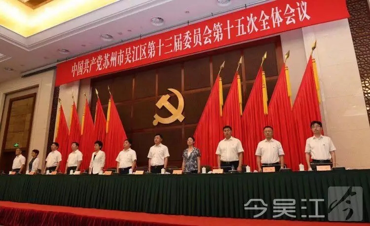 7月27日上午,中国共产党苏州市吴江区第十三届委员会第十五次全体会议在区会议中心召开。这次会议的主要任务是深入贯彻习近平新时代中国特色社会主义思想,全面落实党的十九大和十九届二中、三中全会精神,牢牢把握中央和省委、市委全会要求,总结上半年工作,研判当前形势,部署下半年任务,动员全区上下聚焦高质量发展主题,聚力一体化发展机遇,着眼长远绘蓝图,狠抓当前促发展,顺势而为、借势而进、乘势而上,在更高起点上开创吴江高质量发展新局面。