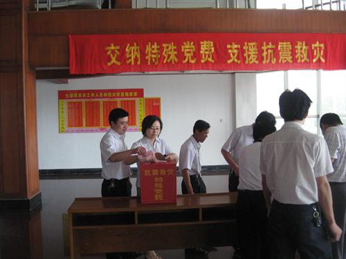 支援抗震救灾,捐款捐物成为最集中、最普遍的表达方式。吴江广大共产党员除带头垂范、踊跃参与捐款活动外,还通过交纳“特殊党费”来表达对地震灾区群众的爱心。截至6月25日,市委组织部“特殊党费”交纳处共计收到全市26634名党员交纳的“特殊党费”817.5万元,其中交纳1000元以上的有2614人。