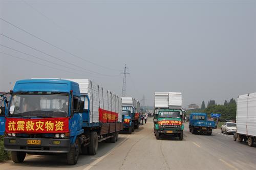 作为吴江彩钢板房重要生产基地,震泽镇接到首批10万平方米的彩钢板房生产任务,期限为7天。面对这项艰巨的政治任务,彩钢板企业党员业主带头立下军令状,确保高质量、快速度完成生产。许多企业党员业主纷纷拉下原来的订单,集中生产彩钢板房。不少党员业主、员工加班加点,24小时坚守在生产岗位上。全镇还抽调了200多名党员干部投入彩钢板的生产和装运工作,全力以赴抓生产、抢进度。在大家的共同努力下,震泽镇首批生产任务提前完成,并在第一时间运往了灾区。