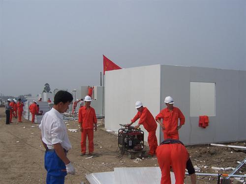 (我市党员活跃在四川临时安置房援建现场)
