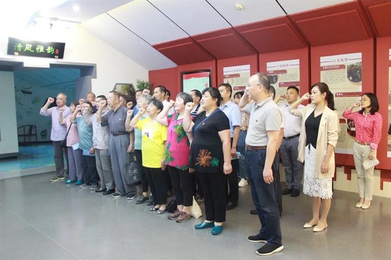 党风廉政教育馆主要由高瞻远瞩、正风肃纪、赓续传承、清风雅韵等四个展厅组成,并运用声、光、电等信息化技术,赋予场景式和互动性,更好体现政治性、思想性、警示性。在讲解人员的带领下,全体人员观看了吴江廉政建设宣传片,感受“鲈乡清风”;逐一参观了四个展厅,在新思想、纪律规矩、警示案例、清官廉吏、乡贤榜样及文化作品中,感受从自信、自警到自觉、自励的学习体验;重温了入党誓词,再次叩响党员同志们“廉”字当头的责任担当。