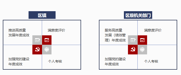 针对区镇、区级机关部门采用两套考核评价办法,实行差异化考核。