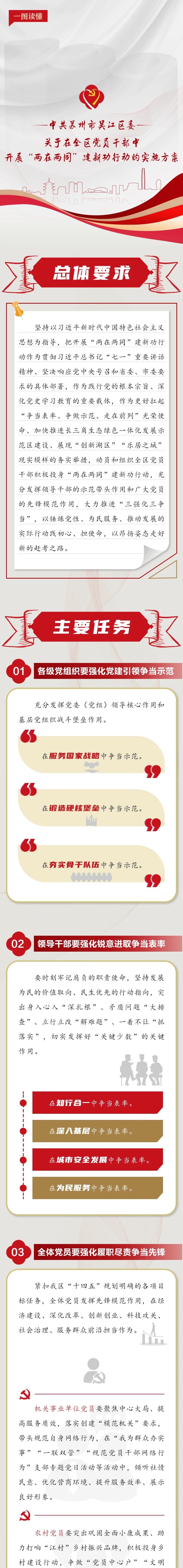 为深入贯彻习近平总书记“七一”重要讲话精神,进一步落实省委、市委要求,近日,区委印发实施方案,在全区党员干部中部署开展“两在两同”建新功行动,强调吴江肩负着建设长三角生态绿色一体化发展示范区的光荣使命,全区广大党员干部必须进一步增强“四个意识”、坚定“四个自信”、做到“两个维护”,自觉做伟大号召的迅速行动者、忠实执行者、模范践行者,在与全区人民齐奋斗、共奋进中建功新时代。