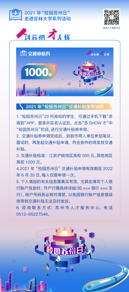 10月18日,由苏州市人才工作领导小组主办,吴江区人才工作领导小组承办的2021年“校园苏州日”走进吉林大学系列活动将携137家用人单位开展招聘,其中72家单位参与现场招聘。活动提供岗位5975个,其中博士岗位68个,硕士岗位772个,本科岗位5135个。另全市有部分国企和事业单位面向社会公开选聘优秀青年人才688人。