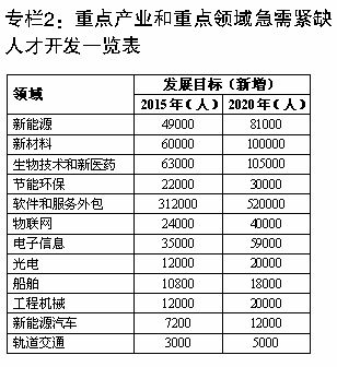 专栏2:重点产业和重点领域急需紧缺人才开发一览表(见上表)