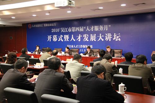 人才是最为宝贵、最可持续和最具优势的战略资源,是推动科学发展的第一资源。11月3日,为期一个月的2010年吴江市第四届“人才服务月”拉开帷幕。在“人才服务月”期间,全市将通过4大系列67项活动不断优化全市人才发展环境。市领导吴炜、徐国斌等出席开幕式。